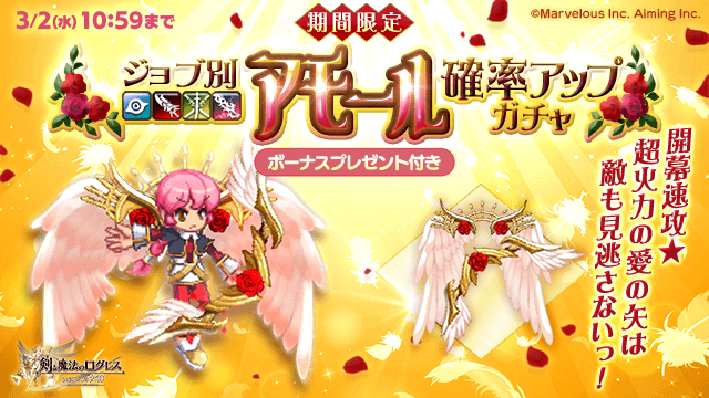 開幕速攻で強力な愛の矢を放て★「ジョブ別 アモール確率アップガチャ」