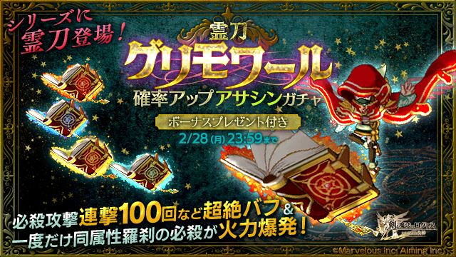 シリーズに霊刀登場!「霊刀グリモワール確率アップ アサシンガチャ」