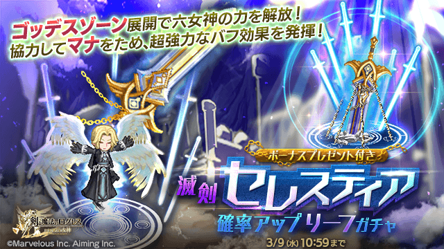 女神の加護を授かり敵を殲滅せよ!「滅剣セレスティア確率アップ リーフガチャ」