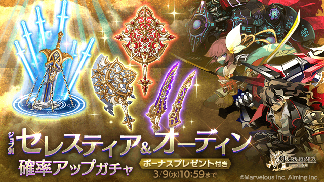 ●神々の力を身に宿せ!「ジョブ別 セレスティア&オーディン確率アップガチャ」
