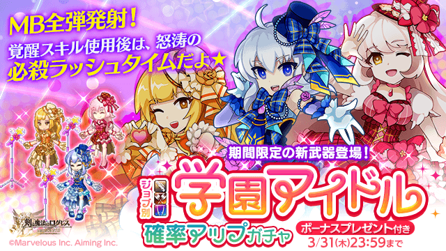 ●きらめくひと時、目を離さないで☆「ジョブ別 学園アイドル確率アップガチャ」【3/17(木)更新】