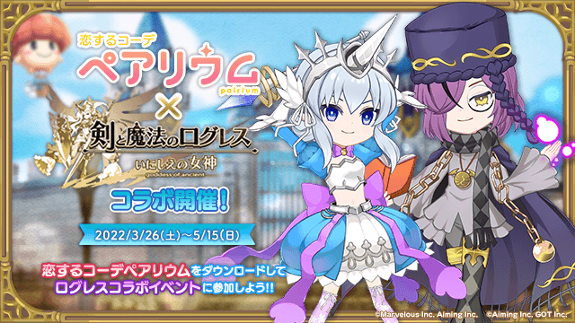 期間中、Aimingが開発を手掛けた『恋するコーデ ペアリウム』にて「剣と魔法のログレス いにしえの女神」コラボが開催されます。