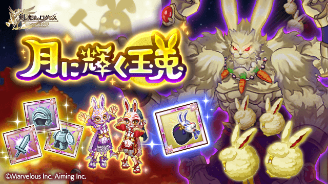 期間中、「ログレス」タブのスペシャルクエストおよび時限クエストにて「月に輝く玉兎」を開催します。