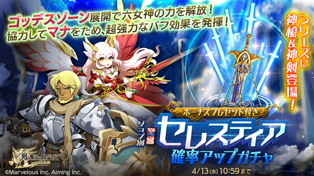 「セレスティア」に神槍&神剣登場!女神の恩恵を受けて仲間を援護せよ!