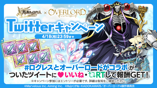 ハッシュタグ「#ログレスとオーバーロードがコラボ」が付いたツイートに「いいね」や「RT」でポイント獲得!