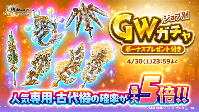 人気の専用・古代機が確率最大5倍!「ジョブ別 GWガチャ」