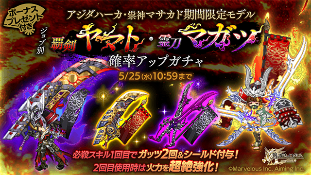 攻守兼備の超強力な限定モデル!「ジョブ別 覇剣ヤマト・霊刀マガツ確率アップガチャ」
