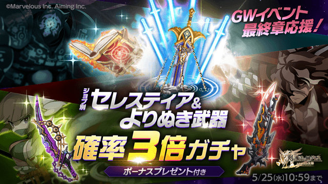 GWイベント最終章攻略を応援!「ジョブ別 セレスティア&よりぬき武器確率3倍ガチャ」