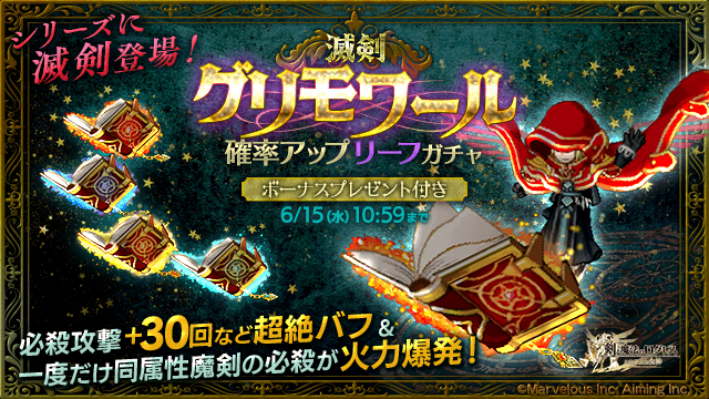 ●シリーズに滅剣登場!「滅剣グリモワール確率アップ リーフガチャ」