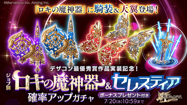 「ロキの魔神器」に騎装&天翼登場!「ジョブ別 ロキの魔神器&セレスティア確率アップガチャ」