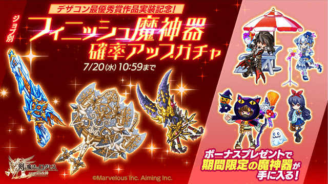 ボーナスで期間限定武器も!「ジョブ別 フィニッシュ魔神器確率アップガチャ」
