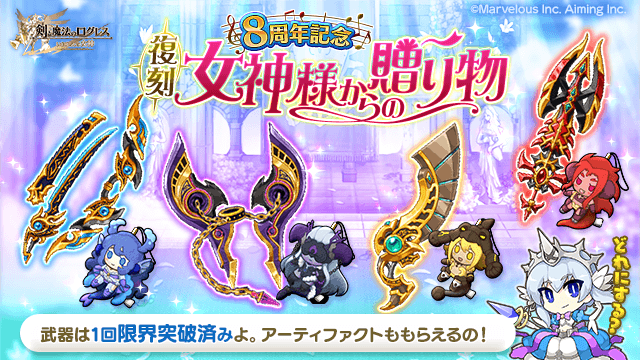 期間中、「ログレス」タブのスペシャルクエストにて「女神様からの贈り物」を復刻開催します。