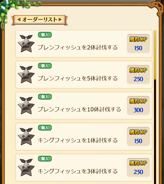 OPは「オーダーリスト」にあるオーダーを達成することで獲得することができる。
