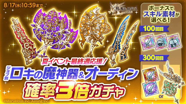 夏イベント最終週攻略を応援!「ジョブ別 ロキの魔神器&オーディン確率3倍ガチャ」