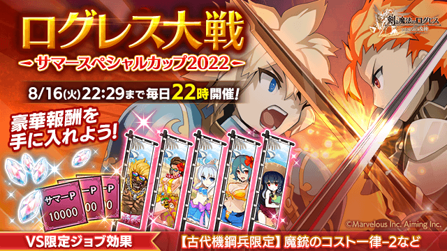 期間中、「ログレス」タブの時限クエストにて、ログレス大戦「サマースペシャルカップ2022」を開催します。