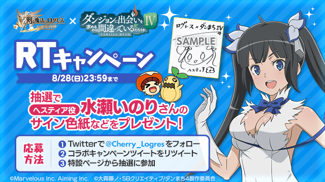 Twitterでコラボ記念プレゼントが当たる!「ダンまちIVコラボ記念RTキャンペーン」
