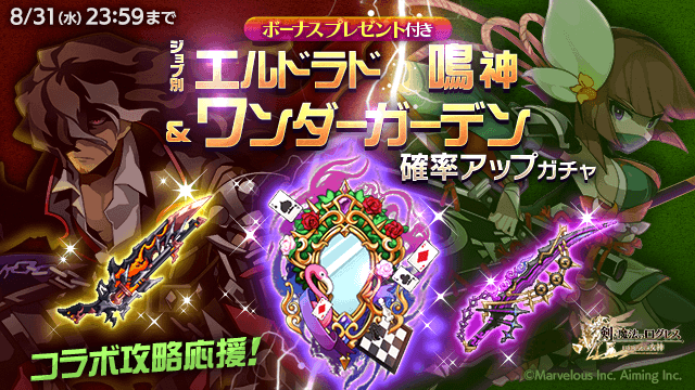 コラボクエスト攻略を応援!「ジョブ別 エルドラド・鳴神&ワンダーガーデン確率アップガチャ」