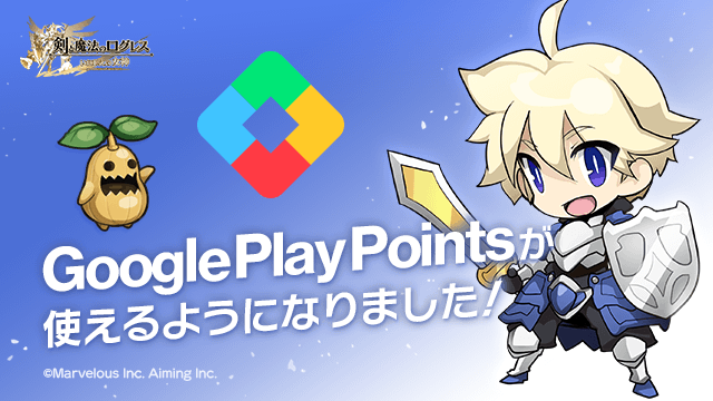 2022/9/7(水)0:00より、『剣と魔法のログレス いにしえの女神』でもGoogle Play Pointsが利用可能になりました。