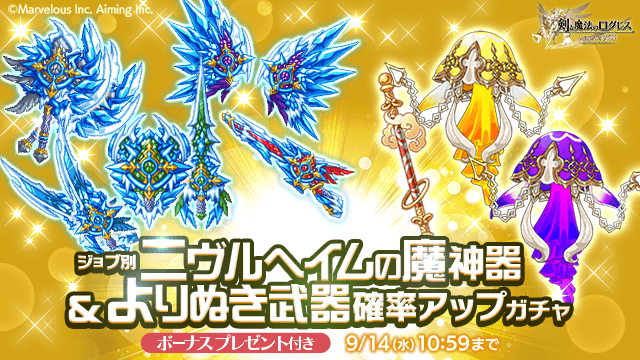 有用な武器を手に入れろ!「ジョブ別 ニヴルヘイムの魔神器&よりぬき武器確率アップガチャ」