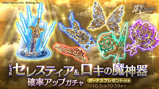 マナを活用して勝利を掴め!「ジョブ別 セレスティア&ロキの魔神器確率アップガチャ」
