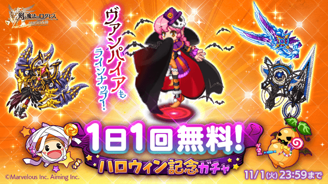 ※「1日1回無料!ハロウィン記念ガチャ」の利用回数は毎日0:00にリセットされます。