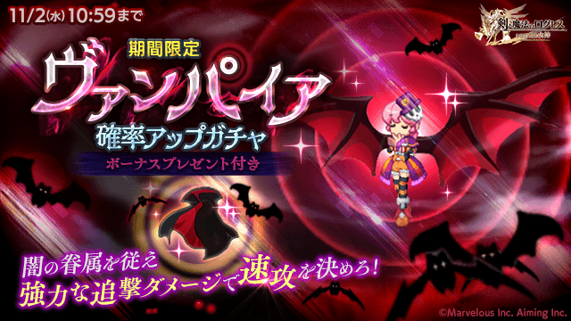 闇の眷属を従え、速攻超火力でキメろ!「ヴァンパイア確率アップガチャ」