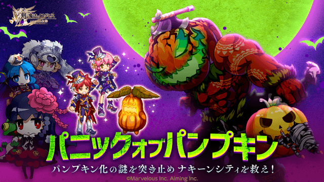 期間中、「アストレア」タブのスペシャルクエストおよび時限クエストにて「パニックオブパンプキン」を開催します。