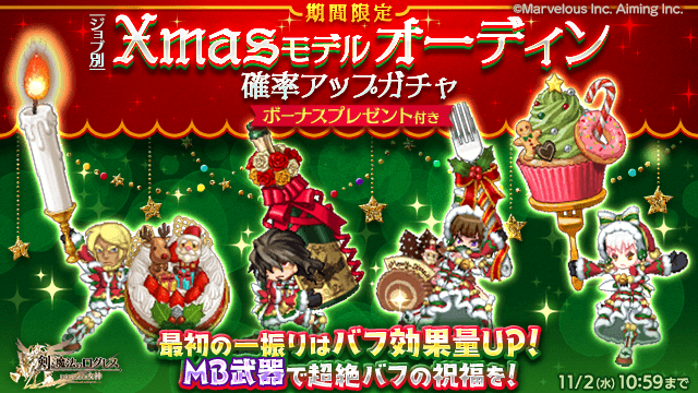 期間限定のMB武器で超絶バフの祝福を!「ジョブ別 Xmasモデルオーディン確率アップガチャ」