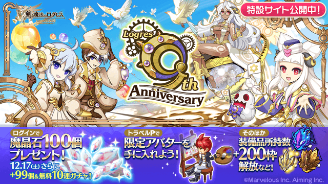 【1/11更新】「9th Anniversary」開催!ログインして魔晶石100個手に入れよう!