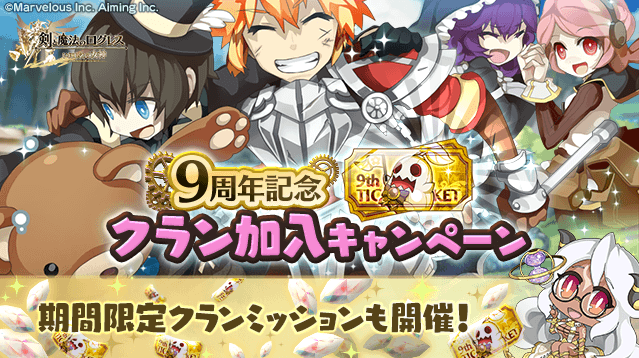 「グロウギア合計強化Lv3」を達成したクランメンバーの人数に応じて「9周年記念ガチャチケット」をプレゼント!