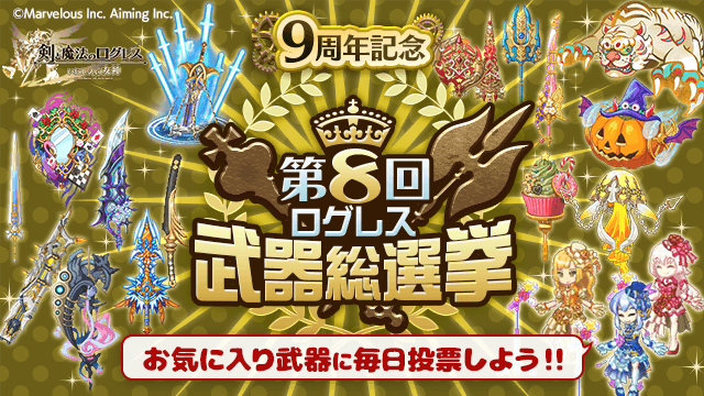 期間中、ログレス9周年記念として「第8回ログレス武器総選挙」を開催します。