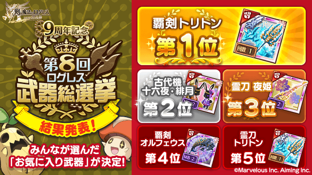 みんなの選んだ『お気に入り武器』が決定!9周年記念「第8回ログレス武器総選挙」結果発表!