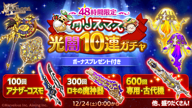 【12/24(土)0:00から】人気武器もりだくさんの超豪華ボーナス付き★「クリスマス光闇10連ガチャ」