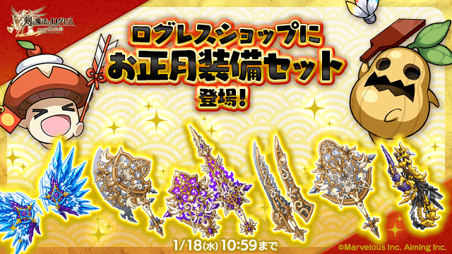 期間中、ログレスショップの「オススメ」タブにて、お正月記念装備セットを販売します。