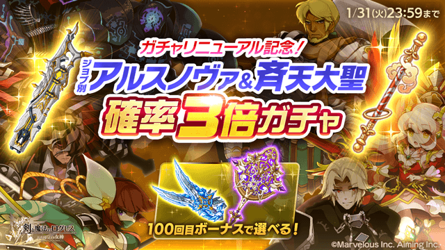 強力な武器を手に入れろ!「ジョブ別 アルスノヴァ&斉天大聖確率3倍ガチャ」