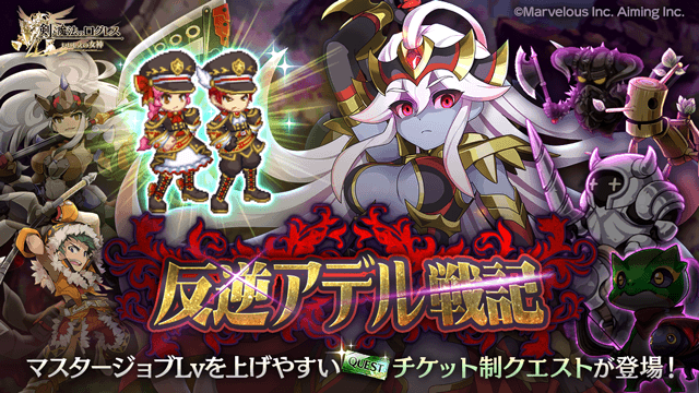 期間中、「ログレス」タブのスペシャルクエストおよび時限クエストにて「反逆アデル戦記」を開催します。