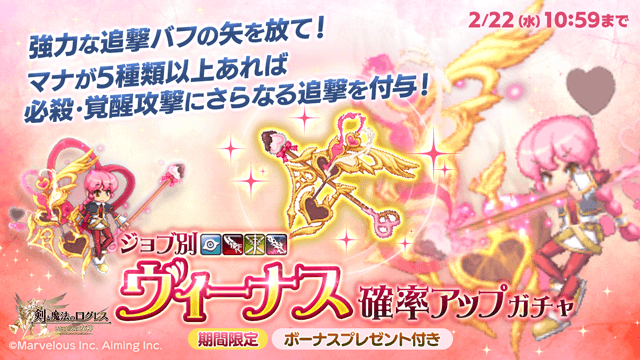 期間中、ガチャの「オススメ」タブにて「ジョブ別 ヴィーナス確率アップガチャ」を販売します。