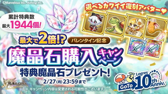 魔晶石最大2倍&限定アバターもらえる!「魔晶石購入キャンペーン」【22:45更新】