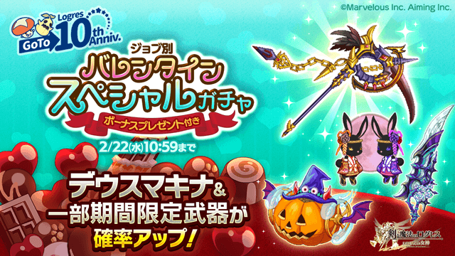 人気武器と定番ガチャでは手に入らない期間限定武器が確率アップした、GoTo10周年&バレンタイン記念の特別なガチャをお見逃しなく!