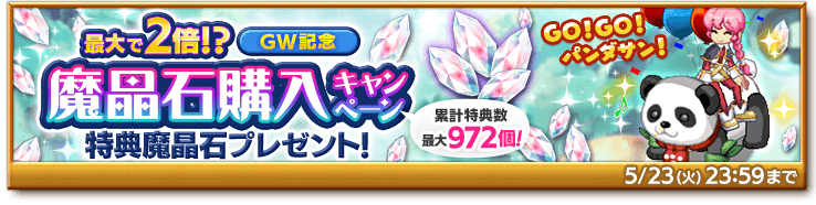 2023/4/26(水)メンテナンス後~5/23(火)23:59まで