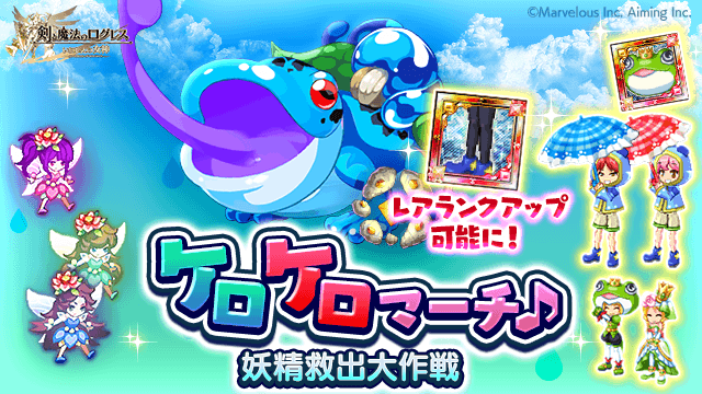 期間中、「ログレス」タブのスペシャルクエストおよび時限クエストにて「ケロケロマーチ♪」を開催します。