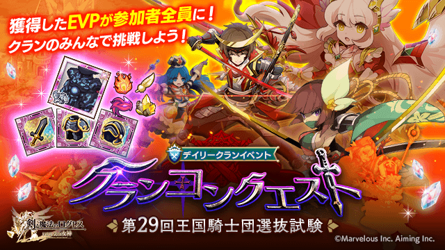 ●クランのみんなで挑戦しよう!「クランコンクエスト~第29回王国騎士団選抜試験~」