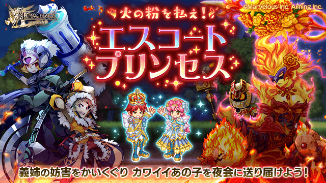 期間中、「ログレス」タブのスペシャルクエストおよび時限クエストにて「火の粉を払え!エスコートプリンセス」を開催します。