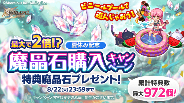 夏休み記念!期間中の魔晶石購入の合計金額に応じ、特典魔晶石や限定アバターがもらえるキャンペーンを開催します。