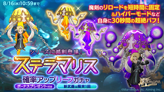 ステラマリスに滅剣登場!マルドゥーク/ムラマサなどが確率UPしたジョブ別ガチャも販売!