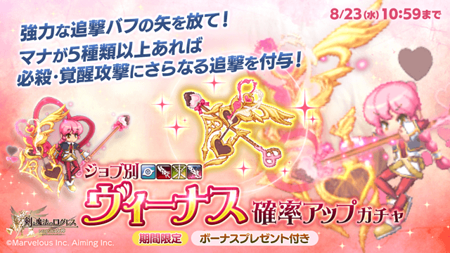 ●強力なバフの矢を放て!「ジョブ別 ヴィーナス確率アップガチャ」