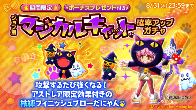 攻撃するたび強くなるにゃん♪「ジョブ別 マジカルキャット確率アップガチャ」