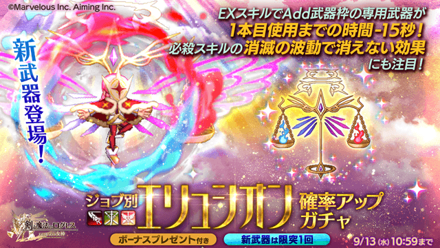 期間中、ガチャの「オススメ」タブにて「ジョブ別 エリュシオン確率アップガチャ」を販売します。
