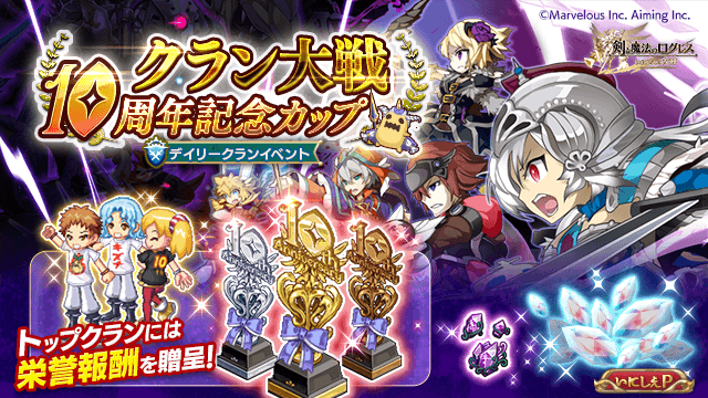 クランランキングの上位入賞者には、クランルームに置くことができる家具「10周年記念カップトロフィー」や限定Tシャツアバターなどを順位に応じて贈呈!