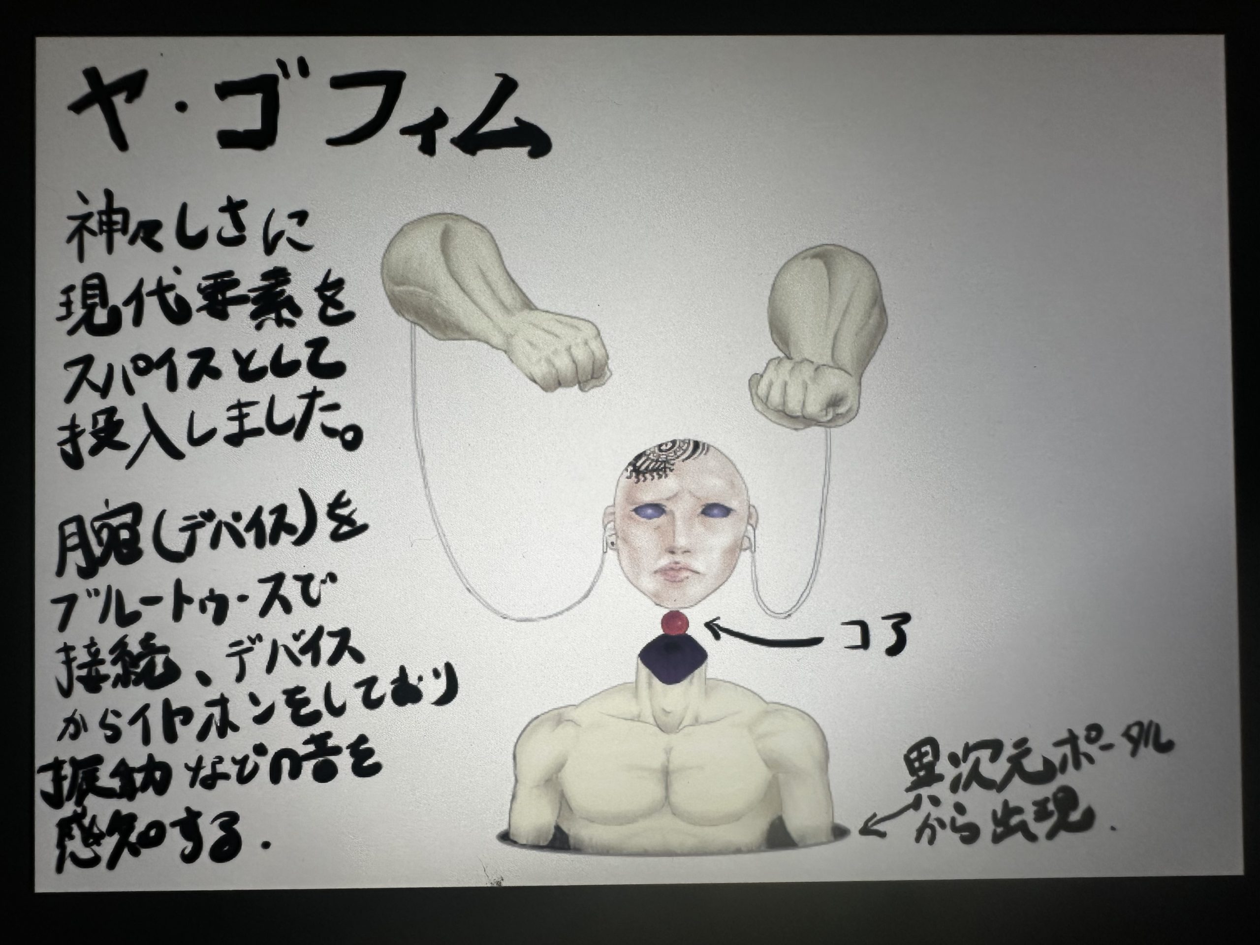 ひときわ不気味なデザインが目を引いたYO! 腕(デバイス)は無線なのに、イヤホンは有線ってどういう事だYO!? コアもむき出しで、気になりすぎるYO! |